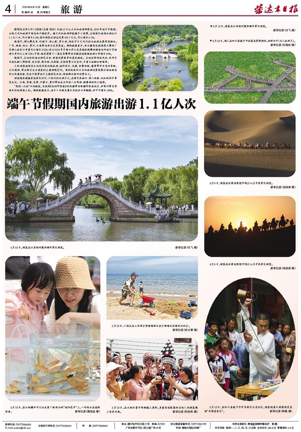 端午节假期国内旅游出游1.1亿人次