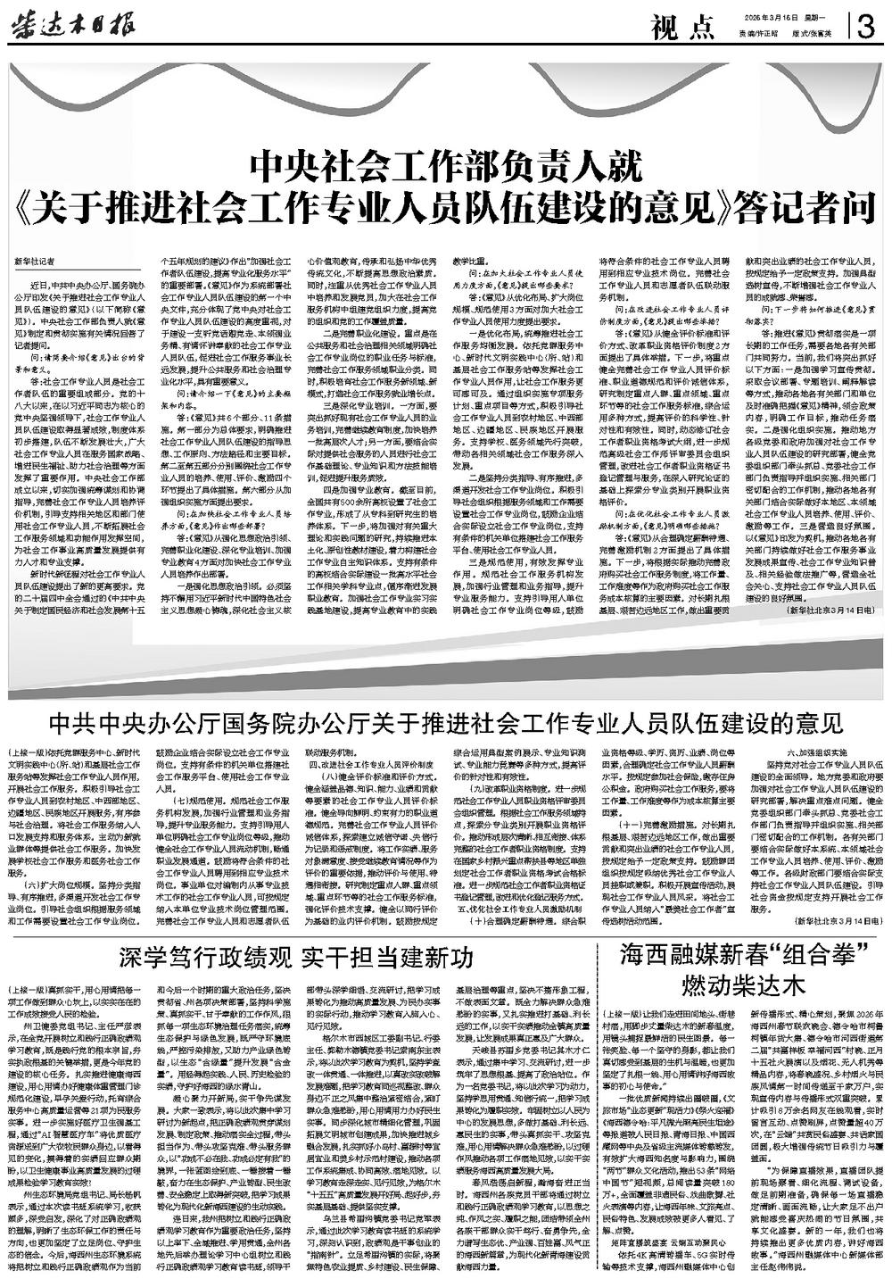 中央社会工作部负责人就 《关于推进社会工作专业人员队伍建设的意见》答记者问