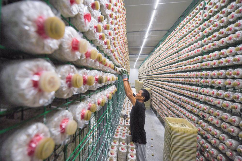 近年来,江苏省连云港市灌南县积极发展食用菌产业,加快推进食用菌全产业链开发,把食用菌产业作为实现乡村振兴和现代农业的先导产业、示范产业,不断推进农业增效、农民增收。新华社记者 李博 摄