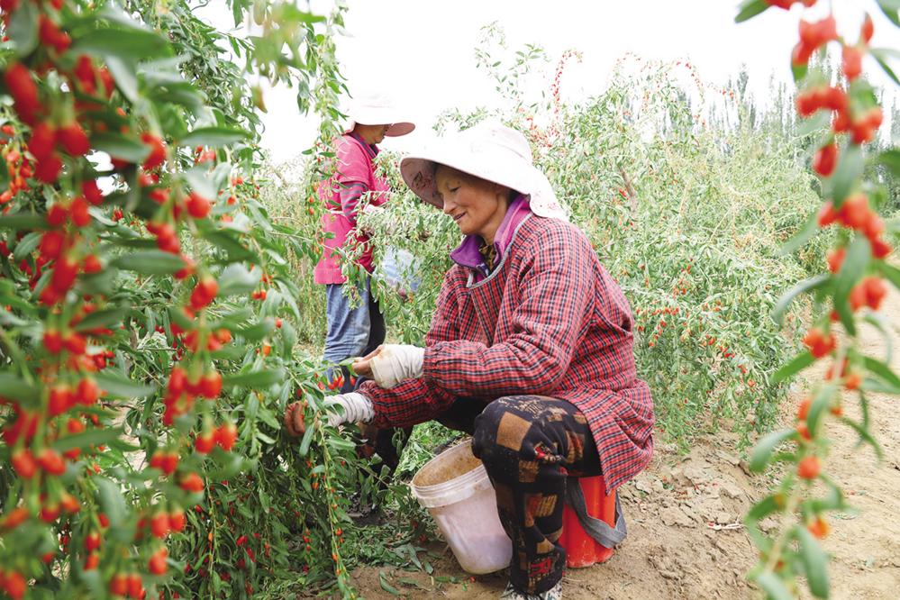 昆仑山下柴杞红,熟练的采摘工们正用双手编织着自己的致富梦,也编织着乡村振兴的幸福画卷。