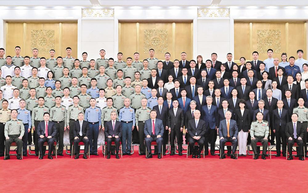 9月17日,党和国家领导人习近平、蔡奇等在北京人民大会堂接见中国人民抗日战争暨世界反法西斯战争胜利80周年纪念活动筹办工作各方面代表。新华社记者 翟健岚 摄