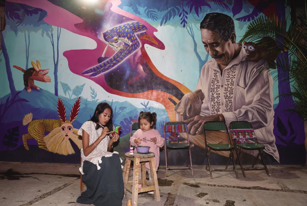 9月16日,在墨西哥瓦哈卡州圣安东尼奥阿拉索拉村一个彩色木雕工坊,一名手工艺人在雕塑上描画花纹。 圣安东尼奥阿拉索拉村的彩色木雕极富盛名。工匠将木材先粗略砍出雏形,再精细地雕刻、打磨,之后涂上亮色颜料,并手工彩绘出精细的图案。这些雕塑多展示动物的流畅线条,并融入幻想或神话元素,在色彩上极为鲜明、生动。彩色木雕技艺不仅是瓦哈卡地区向游客展示当地民俗的一张文化名片,也成为许多家庭的重要经济来源。新华社记者 李梦馨 摄