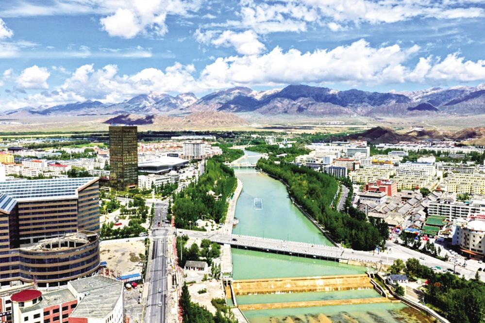 夏日,走进德令哈市,高速公路两侧林带如绿色长廊般绵延不绝,柏树山古柏园里“柏”树成荫,游人悠然驻足,市区内巴音河清澈见底,波光粼粼,河岸两边绿树生机盎然。