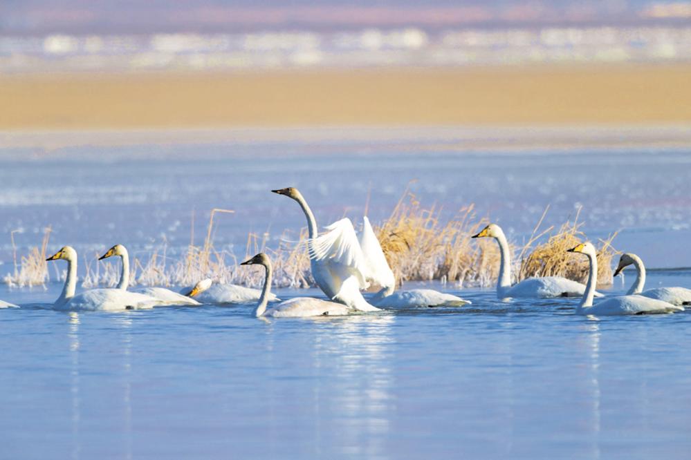 “湖面看着是冻住了,可入湖口那片活水,热闹着呢。”金泰安举起望远镜,熟练地辨认着远处朦胧的影子,“大天鹅、白骨顶、绿头鸭……天越冷,越不能让它们受惊扰。”数鸟、巡护、记录,是金泰安七年来重复却不厌倦的日常。