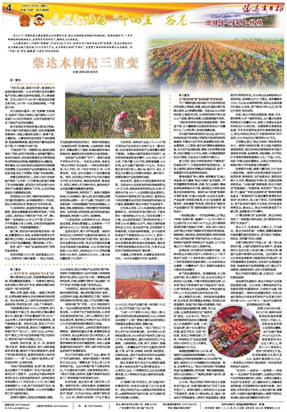 昆仑山下,红果盈枝;戈壁之上,产业新生。柴达木枸杞的每一步蝶变,都镌刻着海西州高质量发展的深深印记,更勾勒出“荒漠绿、枸杞红、农民富”的动人图景。