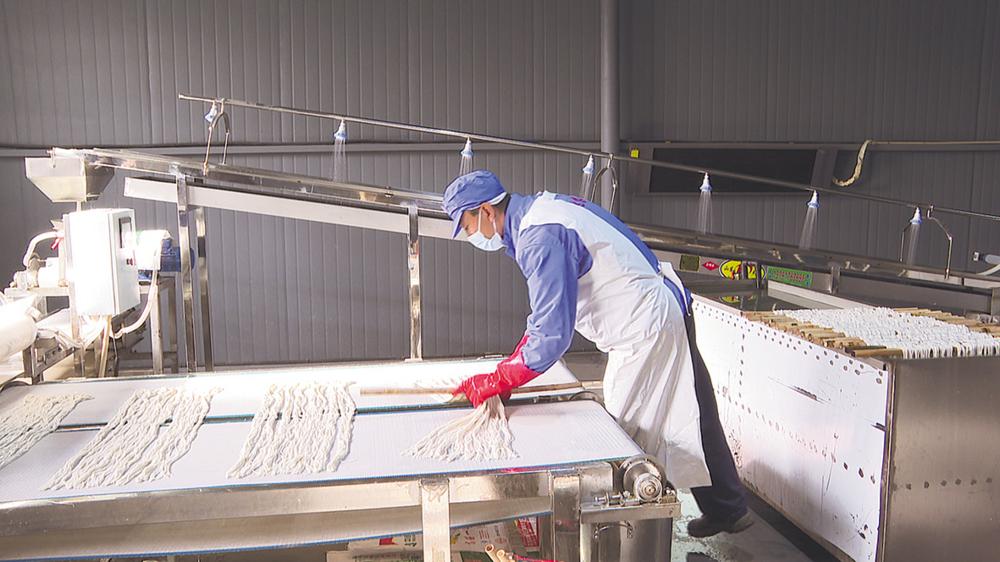 走进仁达合作社的粉条加工厂,机声隆隆,工人们各司其职,磨粉、打浆、和面、漏粉、冷却、定型、晾晒等一道道工序有条不紊地进行着,合作社将自产的优质土豆加工成粉条,做成了带动群众增收致富的大产业。