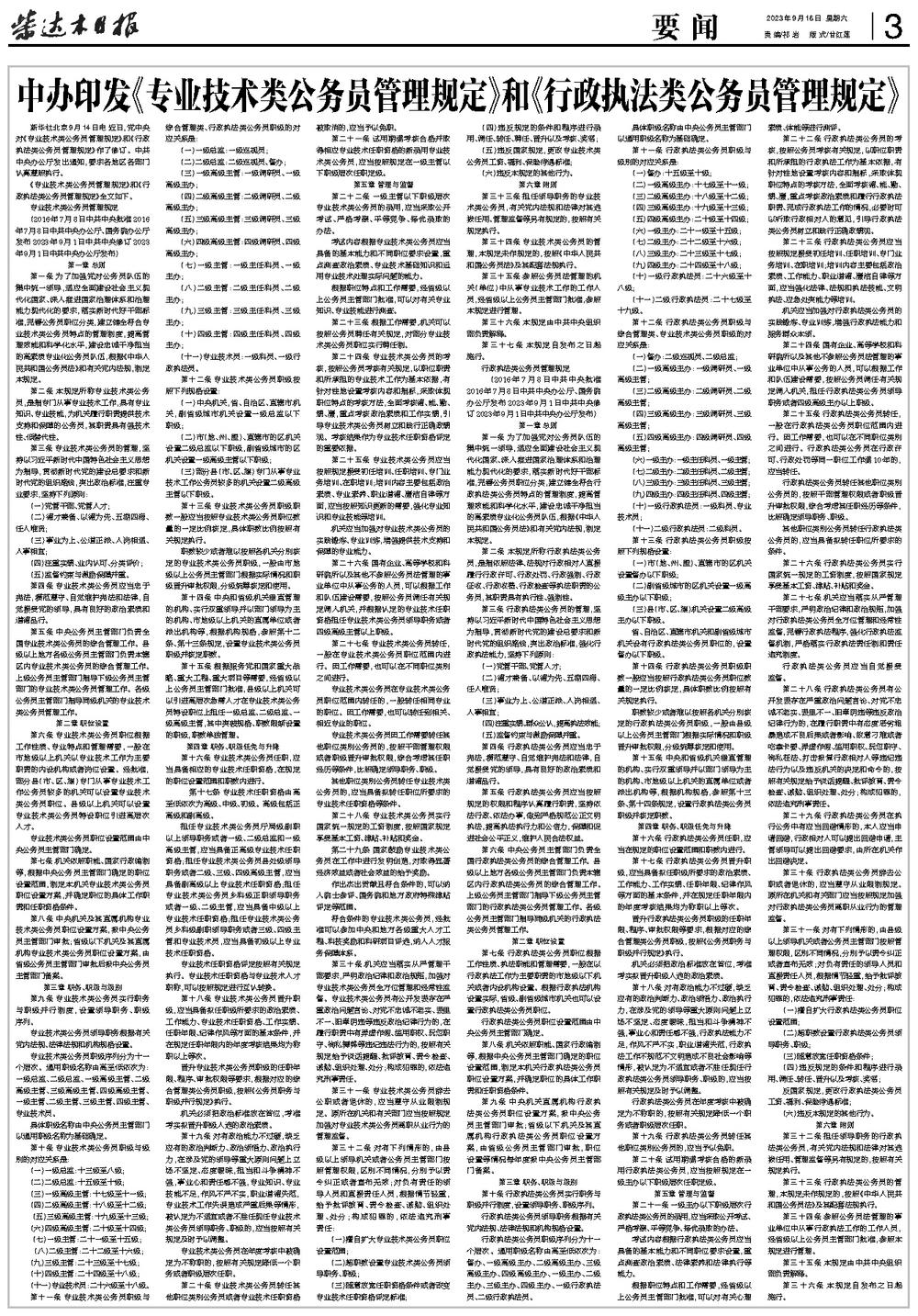 中办印发《专业技术类公务员管理规定》和《行政执法类公务员管理规定》
