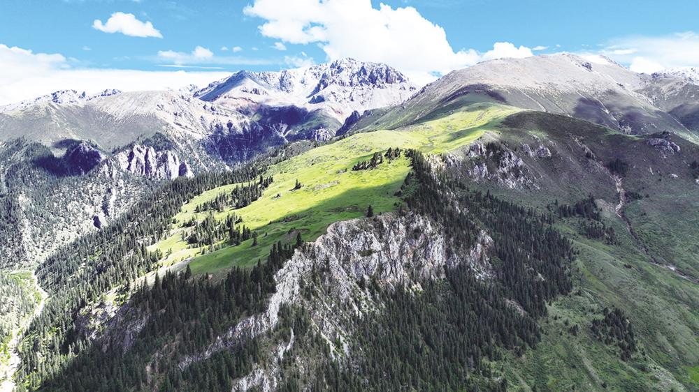 这是6月18日在青海省玉树藏族自治州囊谦县境内拍摄的三江源地区风光(无人机照片)。 新华社记者 张龙 摄