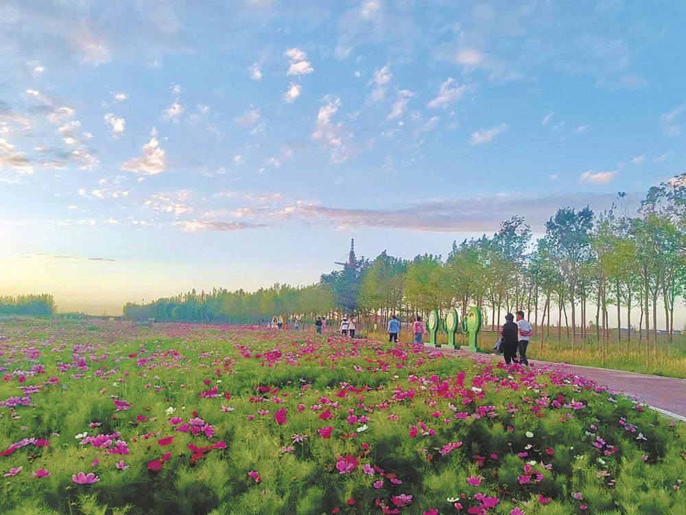 傍晚的湿地公园成为市民休闲散步的好去处。 青海日报记者 陈赟业 摄