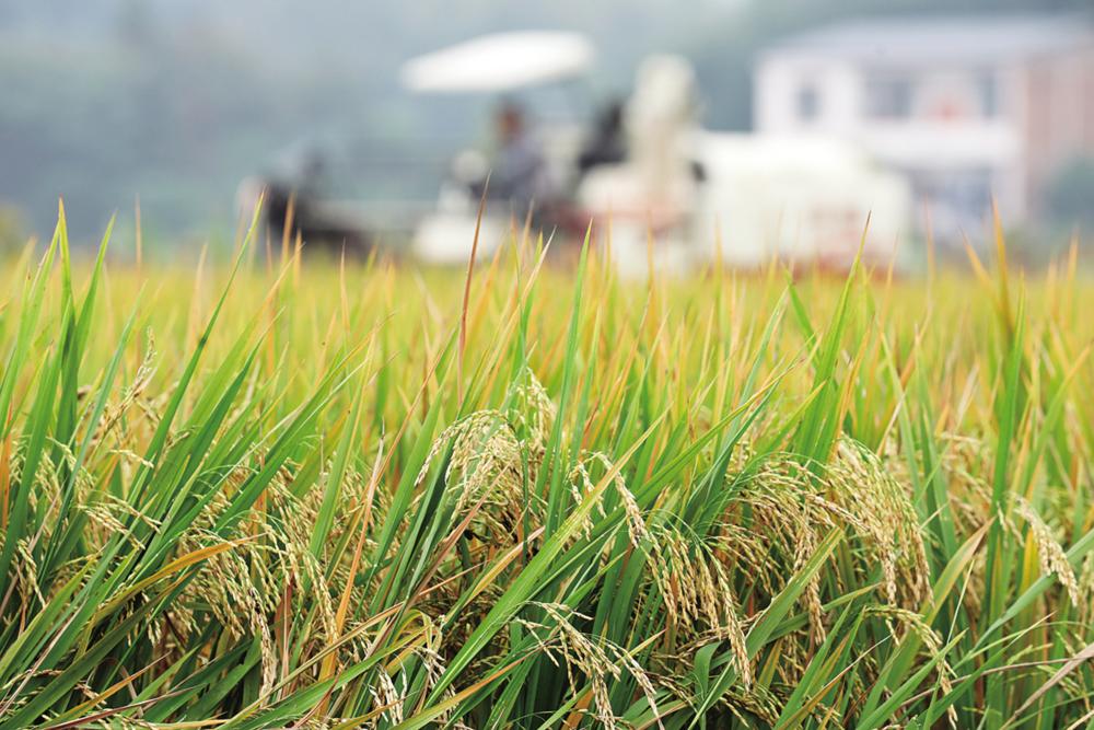 10月13日,在湖南省资兴市唐洞街道程水村,农民驾驶收割机收割稻谷。 金秋时节,各地农民抢抓农时收获农作物,田间地头洋溢着丰收的喜悦。 新华社发(李科 摄)