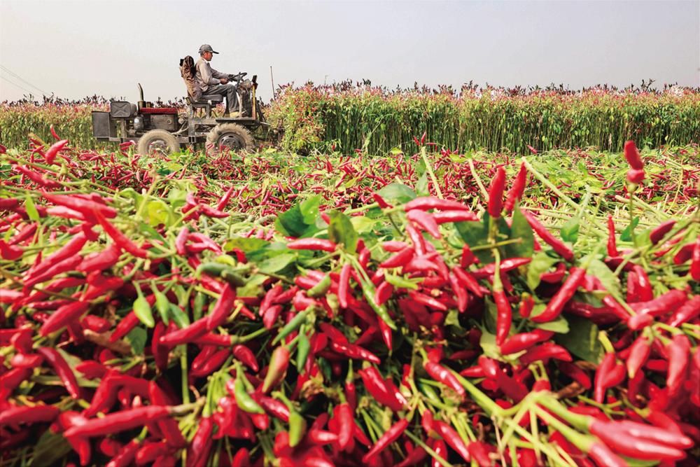 10月14日,河北省唐山市丰南区东田庄乡么排庄村农民在田间收获辣椒。 金秋时节,各地农民抢抓农时收获农作物,田间地头洋溢着丰收的喜悦。 新华社发(李秀清 摄)