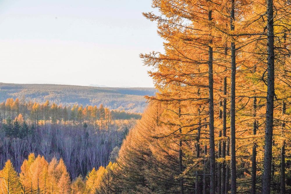10月14日在河北承德拍摄的塞罕坝国家森林公园秋景。 金秋时节,各地色彩斑斓,秋景怡人。 新华社发(刘满仓 摄)