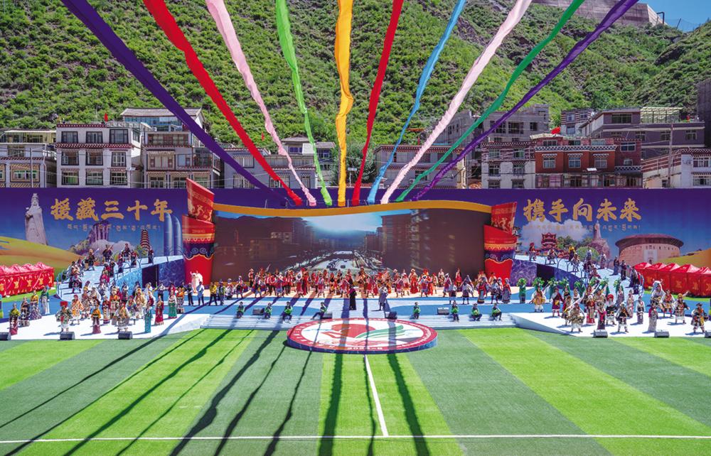 这是第十届三江茶马文化艺术节开幕现场(8月19日摄)。 当日,西藏昌都市第十届三江茶马文化艺术节在昌都市津昌体育文化中心开幕。本次艺术节将举办文化、旅游、经贸、民族民间体育、乡村振兴产业发展成果推介等活动。 新华社记者 旦增尼玛曲珠 摄