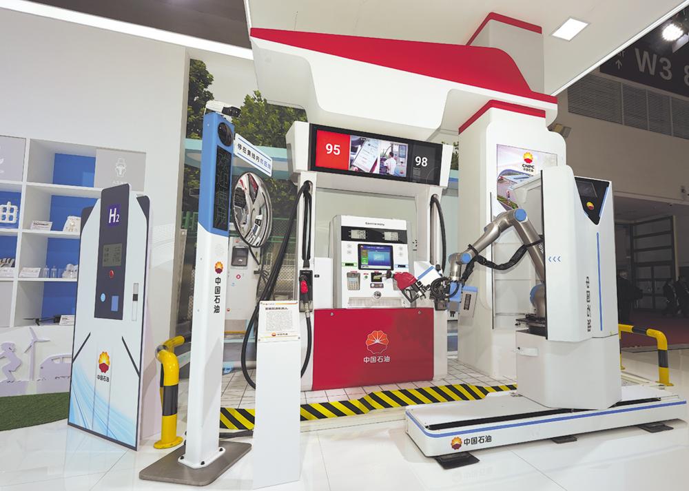 这是11月26日在第二届中国国际供应链促进博览会中国石油展台拍摄的智能加油机器人。 当日,由中国贸促会主办的第二届中国国际供应链促进博览会在北京开幕,主题是“链接世界,共创未来”。 新华社记者 徐宏岩 摄