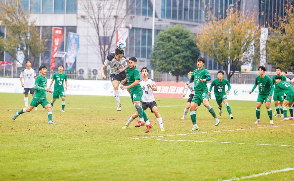 广东队球员(左一)在男足排位赛中争顶。 王 亮 陈 杰 摄影报道