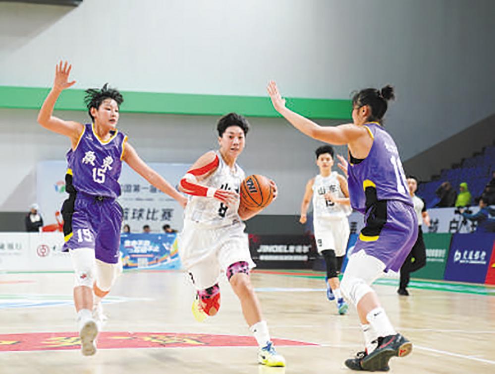 山东队球员(左二)在女篮1/4比赛中持球突破。 人民日报记者 陶相安 摄