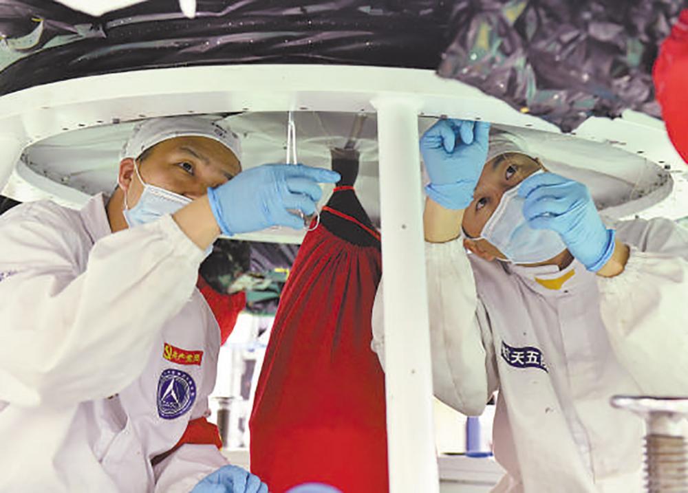 ←研制人员正在进行卫星总装工作。 中国航天科技集团五院 供图