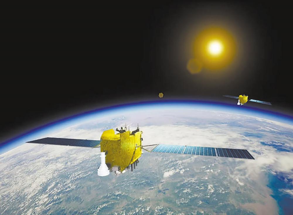 ↑第五十九、六十颗北斗导航卫星在轨示意图。 中国科学院 供图