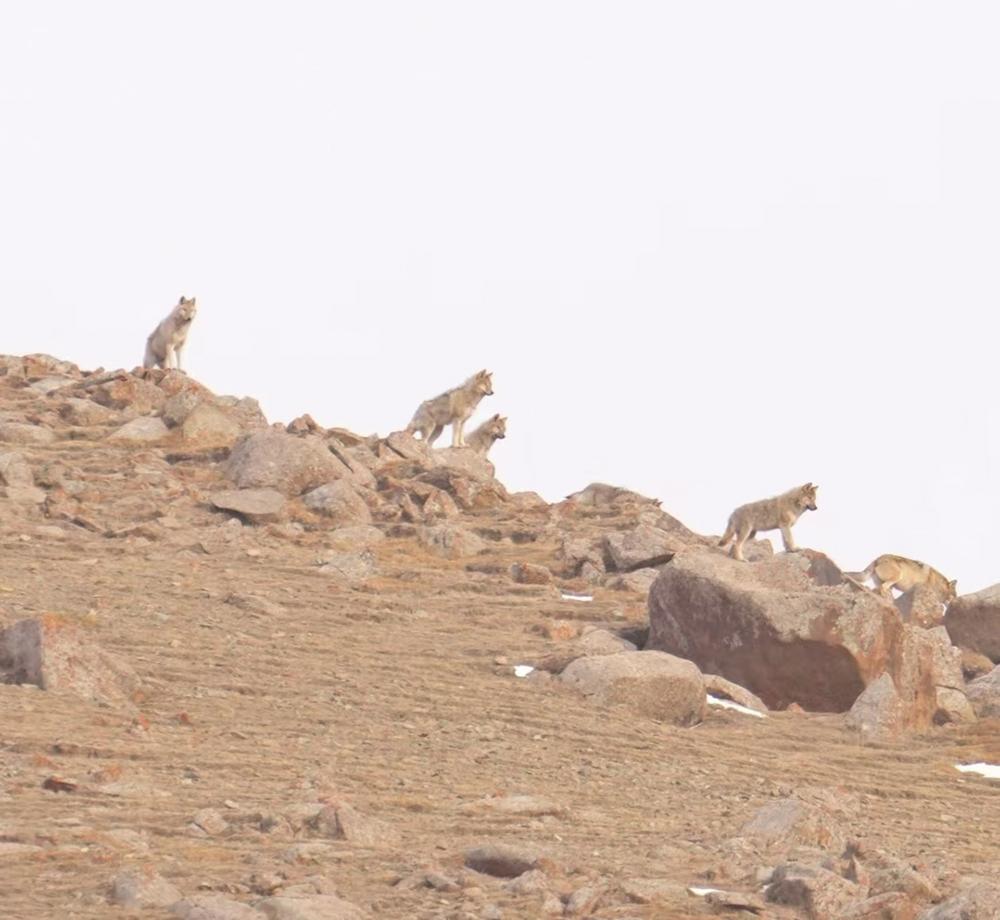 当踏入伊克拉草原深处,一幅壮美的景象豁然展现。成群的白唇鹿、岩羊、原羚、野驴、野狼、野牦牛等野生动物在雪地里悠然觅食、漫步。奔跑的野牦牛如远古的巨兽,那庞大而强壮的身躯与洁白的雪地相互映衬,更显雄浑与坚毅。远处,灵动的野驴身姿矫健,毛色与雪地形成鲜明对比,它们或三两成群相互追逐,或驻足凝望远方,为这寂静的草原增添了几分活泼与俏皮。