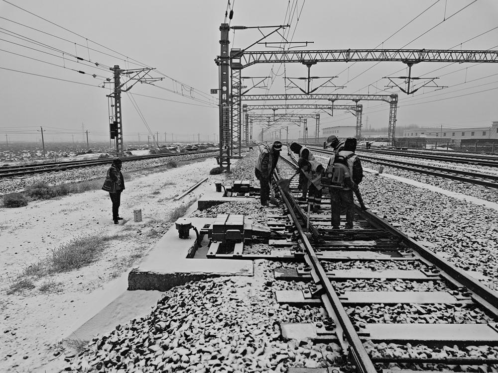 自当日中午起,段管内各车间的干部职工不畏严寒,在零下二十多度的低温环境下,手持吹雪机、扫帚等工具,穿梭于铁道线上。