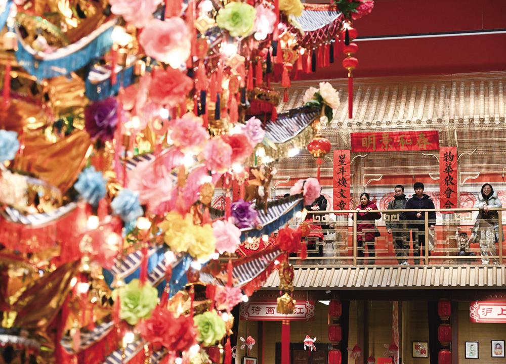 12月21日,观众在展厅内参观。 当日,“过年——春节主题展”在中国非物质文化遗产馆开展。展览内容以春节的重要时间节点为轴,从冬至开始至元宵节结束,分为序厅、辞旧迎新、欢聚祝福、乐岁弦歌和普天同庆等五个主题单元。展览将持续到2025年3月2日。 新华社记者 李贺 摄