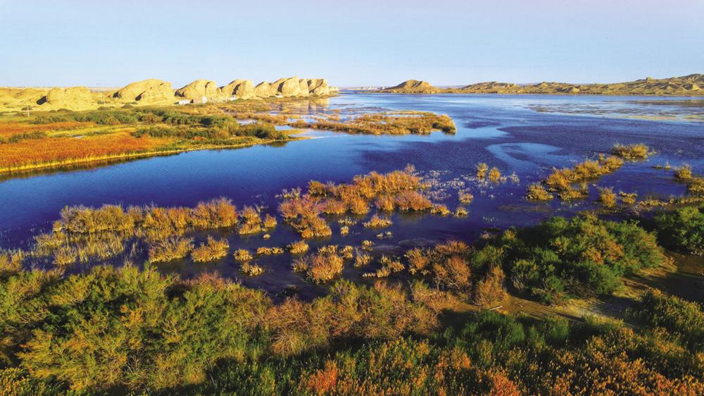 图为德令哈可鲁克湖秋景。近年来,海西积极融入生态文明高地建设,通过实施“三北”、沙化土地封禁保护等重点工程,持续深化生态治理,不断厚植生态绿色底蕴,守护好了绿水青山,倾力打造柴达木生态安全屏障。 资料图