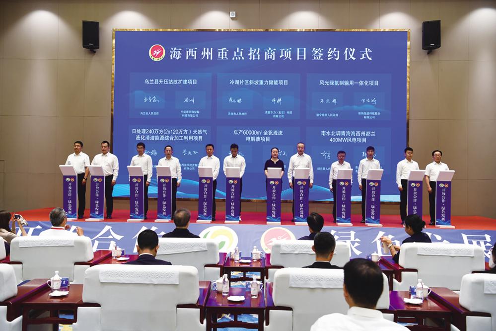 专场签约活动上,州委副书记、州长乔亚群致辞。她表示,近年来,海西州深入学习贯彻习近平总书记考察青海重要讲话精神和对青海工作的重要指示批示精神,认真落实党中央决策部署和省委、省政府工作要求,坚持生态优先、绿色发展,坚持有所为、有所不为,加快推进格尔木盐湖绿色产业园、德令哈清洁能源和装备制造产业园“两个标杆”建设,全力打造柴达木全域绿色有机枸杞种植基地、冷湖天文观测研究基地“两个亮点”,着力构建“浓油重盐型产业”与“风吹日晒型产业”并重的发展新格局,加快培育壮大以绿色算力为引领的新质生产力,高质量发展迈出坚实步伐。诚挚邀请五湖四海的客商朋友们,多到海西走一走、看一看,领略大美风光、寻找合作契机。