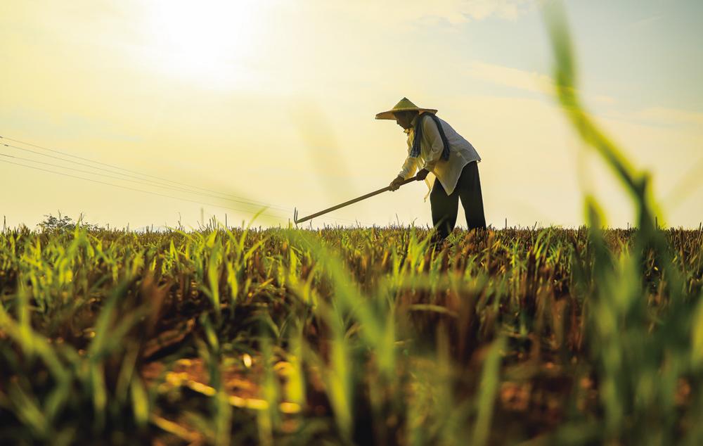 7月7日,山东省枣庄市山亭区农民在田间为谷子除草。 当日是小暑节气,农民抢抓农时,忙碌在田间地头。 新华社发 (张强 摄)