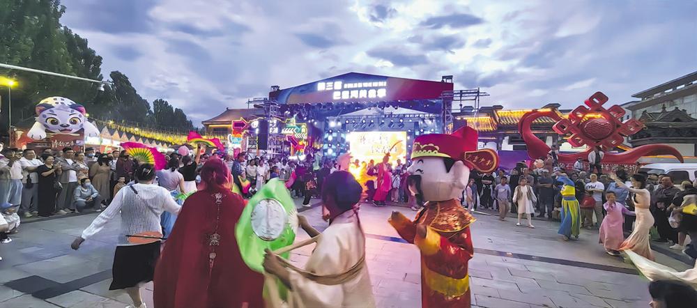 除了美食,每晚8点,中心舞台会有蒙古族长调、藏族锅庄等歌舞表演,让游客沉浸式体验民族文化;街边文创摊位展示售卖特色手工艺品、诗集等,也增添了更多文化体验。