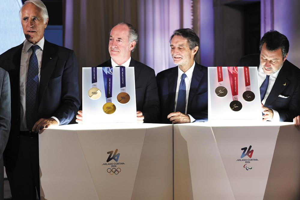 7月15日,2026年米兰—科尔蒂纳冬奥会和冬残奥会奖牌在意大利威尼斯的威尼托大区政府总部正式发布。 这是2026年米兰—科尔蒂纳冬奥会和冬残奥会奖牌发布现场。 新华社记者 李京 摄