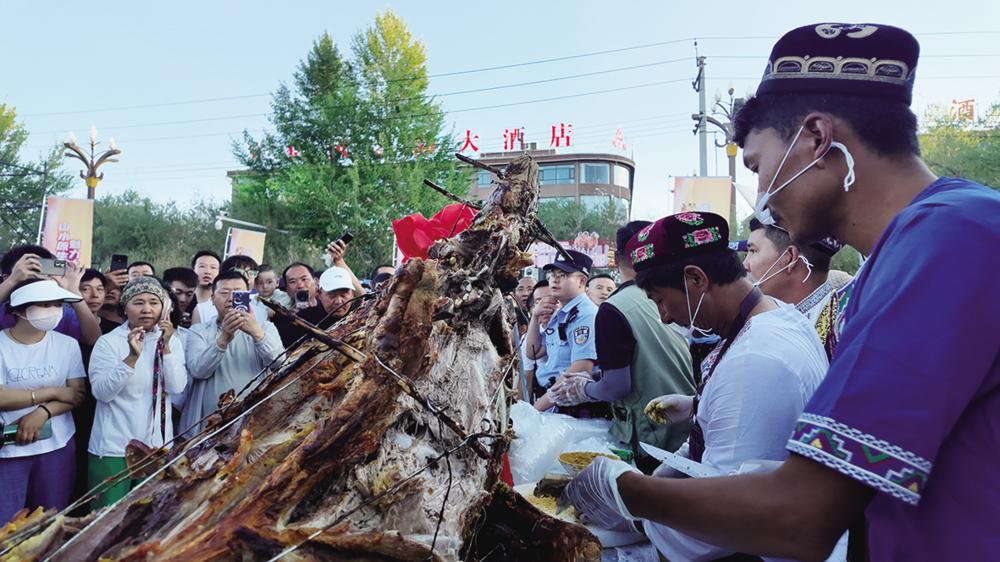 活动现场,不仅汇聚了大柴旦本地的特色美食,还邀请了来自各地的美食商家,带来丰富多样的各地美食,满足不同人群的口味需求,为大家呈现一场规模更大、内容更丰富、体验更独特的美食狂欢。特色烤全驼成为焦点,整只骆驼在特制烤具中烤制,外皮金黄酥脆,香气四溢,引得观众纷纷拍照的同时,还品尝到了独特的烤骆驼肉。