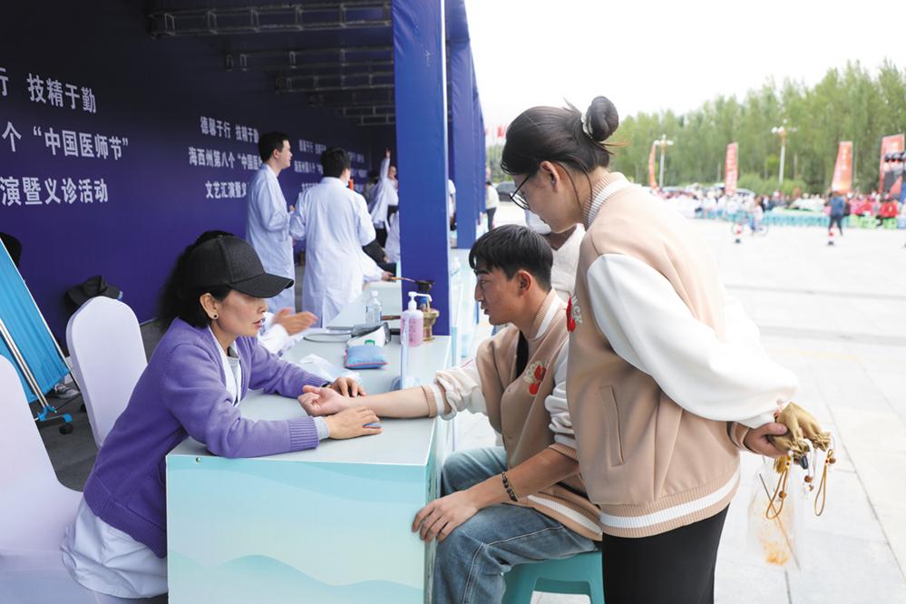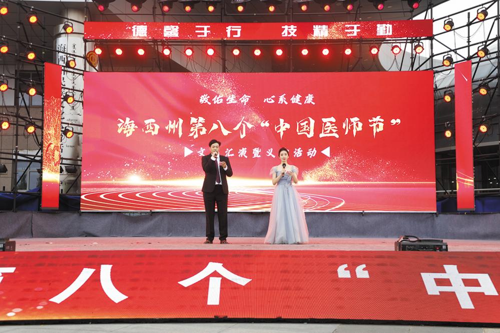 8月17日,在第八个中国医师节来临之际,海西州卫生健康委员会在海西州民族文化活动中心广场举办“德馨于行,技精于勤”文艺汇演暨义诊活动。活动通过歌舞、情景剧等形式将健康知识融入艺术表达,还精心设置有奖竞答环节,让群众在欢声笑语中轻松掌握健康常识。 本报记者 查宝音 摄影报道