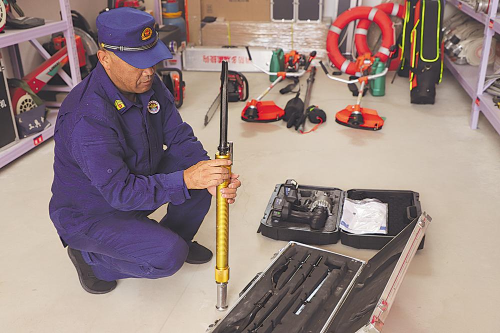 尕海镇的条件和专职消防队的努力得到了各级政府的关注。2019年至今,州市两级政府在基础设施建设、装备器材、人员培训等方面给予了大力支持。2025年,应急厅又配发了一批新装备。“这是电动剪切钳,可以在车辆救援时使用。”桑永锋兴奋地向记者展示,“原先那个是手动的,去年救援一辆SUV时全靠力气。现在这个效率高多了!”他又指着便携式气象仪和四轮消防摩托车说:“这些装备让我们的野外救援和森林火灾扑救能力大大提升。”