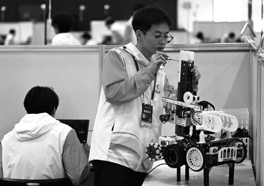 9月20日,选手在自主移动机器人项目比赛中。 9月19日至23日,第三届全国技能大赛在河南郑州举行。这是我国赛事规格最高、竞赛项目最多、参赛规模最大、影响范围最广的综合性国家职业技能赛事。本届赛事中,智能制造、工业互联网、人工智能等新领域赛项占比超50%。比赛现场,这些新领域赛项备受瞩目,引导着职业技能的“新风向”,展现了我国新职业技能人才的全新风貌。新华社记者 李嘉南 摄