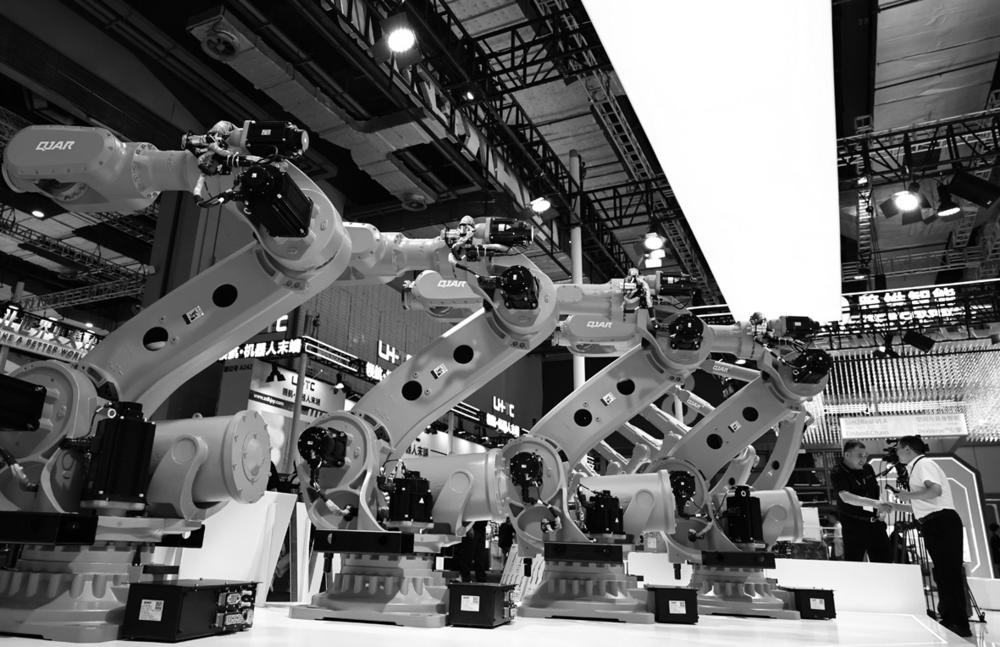 这是展览现场展示的一组大型工业机器人产品(9月23日摄)。 9月23日,第25届中国国际工业博览会在国家会展中心(上海)开幕。本届工博会以“工业新质 智造无界”为主题,吸引来自全球28个国家和地区的近3000家企业参展。 新华社记者 方喆 摄