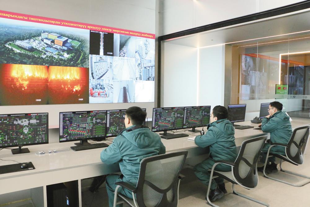 12月27日,在吉尔吉斯斯坦比什凯克,工作人员在比什凯克市垃圾焚烧发电项目中央控制室监测项目运行情况。 吉尔吉斯斯坦比什凯克市垃圾焚烧发电项目竣工投产仪式27日举行,中吉两国200余人参加活动。 新华社记者 江宥林 摄