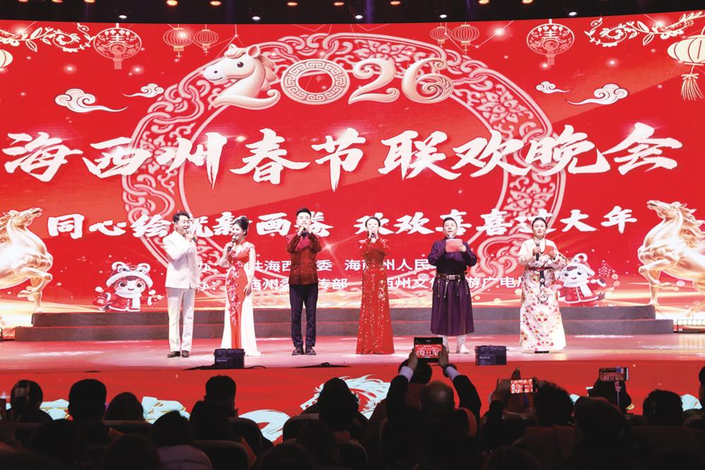 本报讯(记者 浩尔娃 范宗文 都尔斯雷 张萍) 近日,由海西州委、州政府主办,州委宣传部、州文体旅游广电局承办的2026年海西州春节联欢晚会精彩上演,以“同心绘就新画卷 欢欢喜喜过大年”为主题,为全州各族群众献上一场彰显民族特色、饱含时代风采的新春文化盛宴。