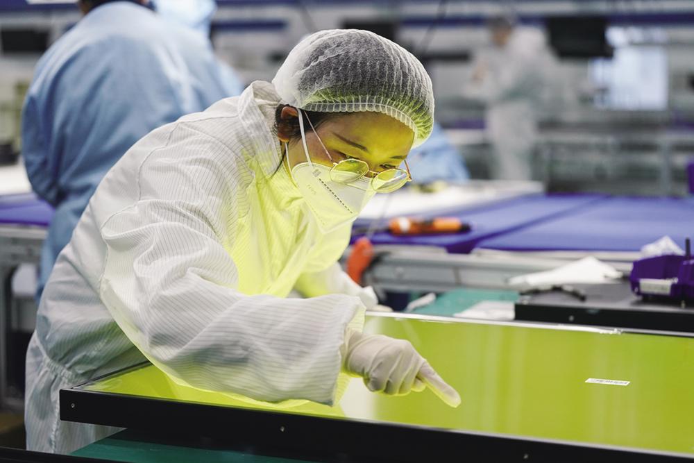2月26日,在合肥统旭智慧科技有限公司,工作人员检测液晶面板。 春节假期过后,安徽省合肥市多家高新技术企业车间内机器运转、人员忙碌,一派火热景象。 在合肥统旭智慧科技有限公司、合肥乐聚机器人技术有限公司等企业生产研发一线,员工们赶订单、忙生产、攻技术,以智能化装备与前沿科技创新赋能制造业升级,展现出新春开工强劲动能与地方经济高质量发展的蓬勃活力。 新华社记者 杜宇 摄