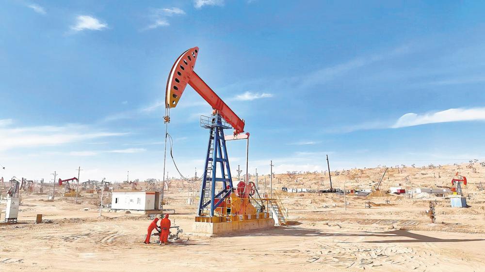 青海油田采油一厂油砂山运维中心岗位员工在生产现场查看光杆是否存在偏磨情况。通讯员 朱智杰 摄