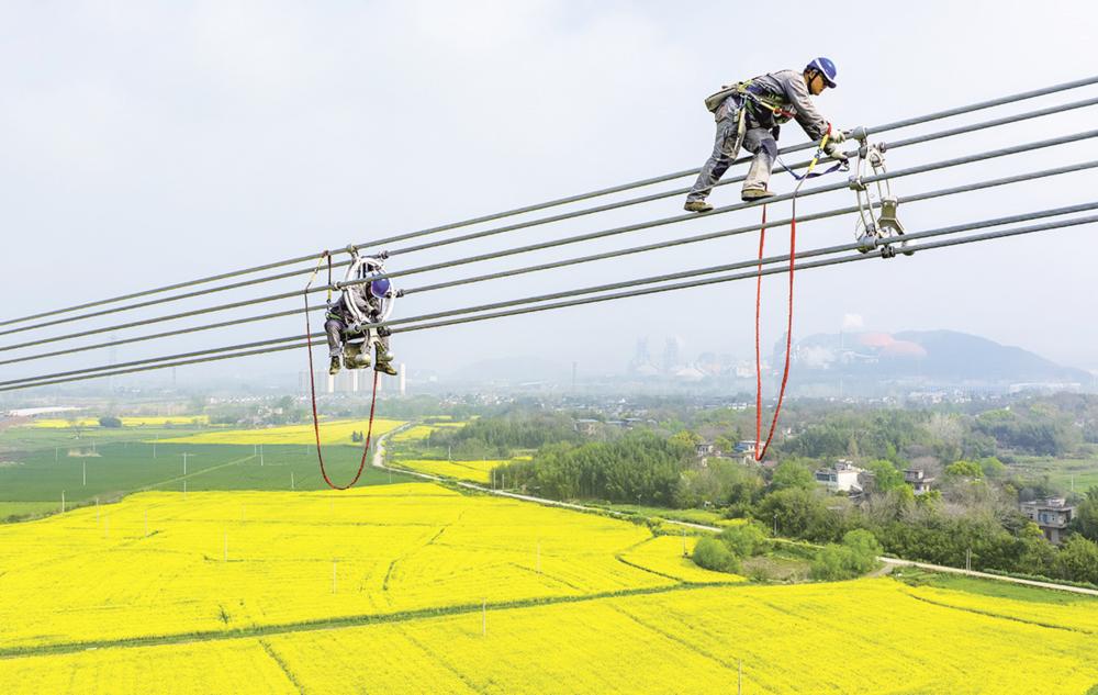 4月1日,在安徽省芜湖市繁昌区境内,安徽送变电工程有限公司施工人员在甘肃—浙江±800千伏特高压直流输电工程施工现场作业(无人机照片)。 近日,在安徽省芜湖市繁昌区境内,电力工人抢抓春季有利天气,奋战在甘肃—浙江±800千伏特高压直流输电工程施工建设一线,保障能源通道重点工程进度。甘肃—浙江±800千伏特高压直流输电工程是国家“十四五”电力发展规划重点工程,线路全长2370千米,工程贯通后每年可输送电能约360亿千瓦时。新华社发(郑贤列 摄)