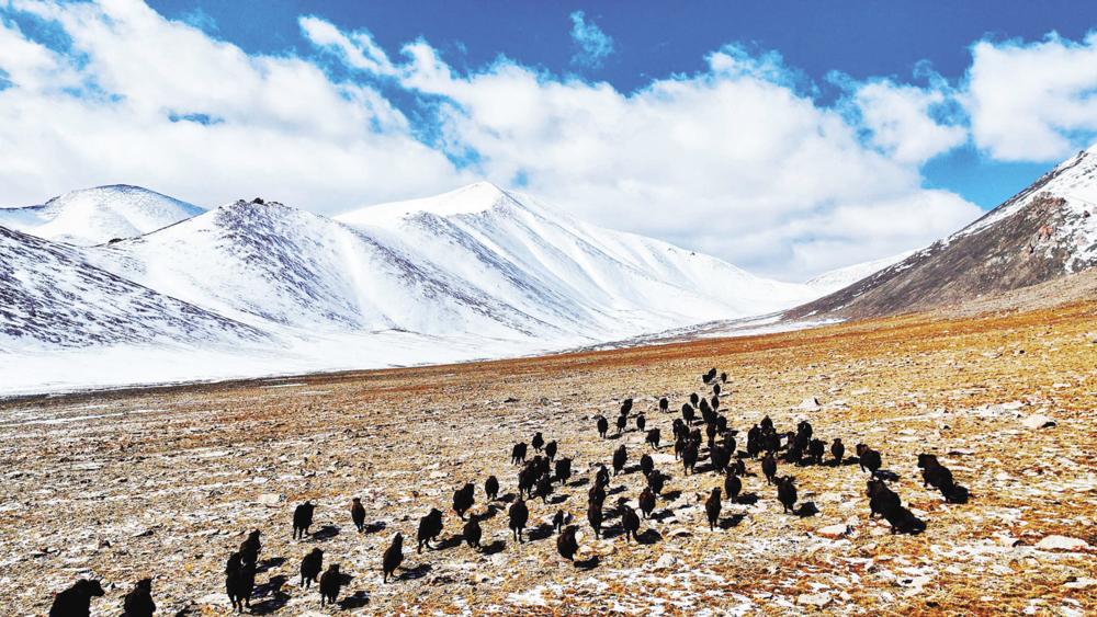 本报讯(记者 索南江措) 五月的哈拉湖,美丽而神秘,结冰的湖水和洁白的雪山在蓝天白云下交相辉映,构成了一幅绝美的画卷。近日,海西州融媒体中心记者在哈拉湖周边采访时发现了数量达200多头的国家一级保护动物野牦牛群。