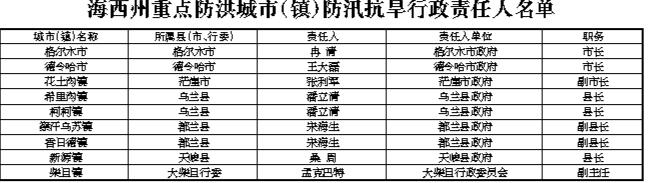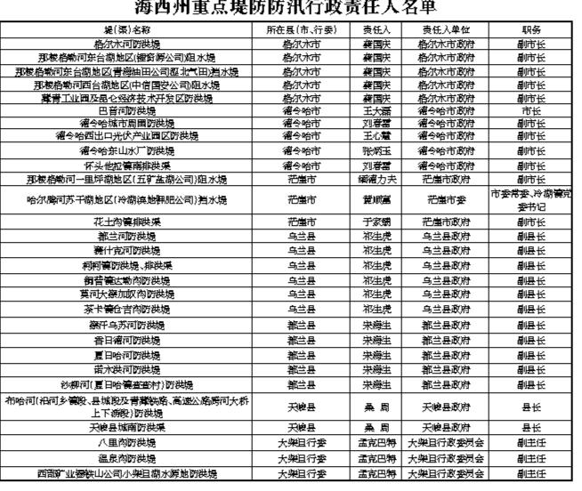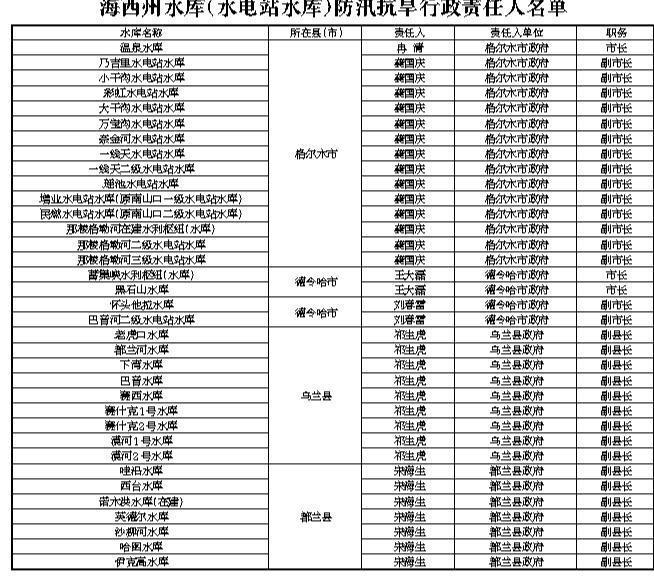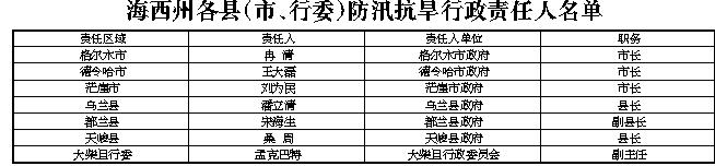 海西州人民政府防汛抗旱指挥部办公室2023年防汛抗旱行政责任人名单