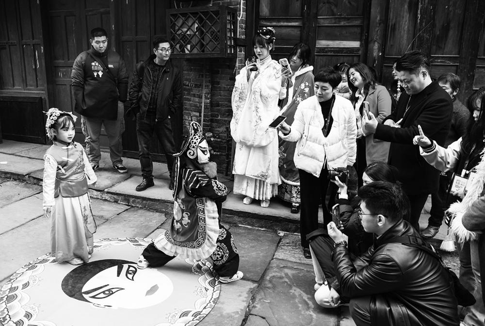 一场冬雨过后,重庆的气温骤降,人们穿上了越冬的厚衣服。但雍溪河畔的老街上却像过年一样热闹,人们摩肩接踵地走在青石板上,伴随着咚咚锵锵的锣鼓声,穿过充满烟火气的豌豆饼店、麻花店、小面馆。