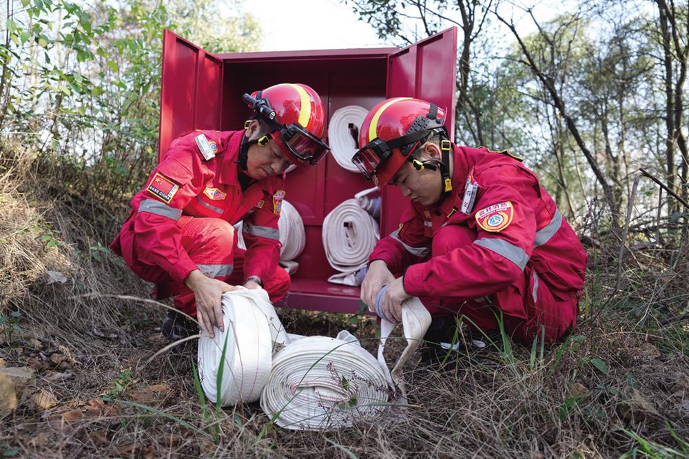 12月7日,在长沙岳麓山风景名胜区桃花岭景区,森林消防员在演练中检查森林消防“管网上山”设施。 当日,湖南湘江新区林业局在长沙岳麓山风景名胜区桃花岭景区开展森林消防应急救援演练。通过操作无人机查看火情、检查森林消防“管网上山”设施、多级森林消防泵灭火演练、消防车灭火等训练项目,提高森林火灾综合防控能力,为景区游客安全保驾护航。 近年来,岳麓山风景名胜区打造“管网上山”系统,建设覆盖全景区主要山体的森林消防管网,新建管网约14.3千米。新华社记者 薛宇舸 摄