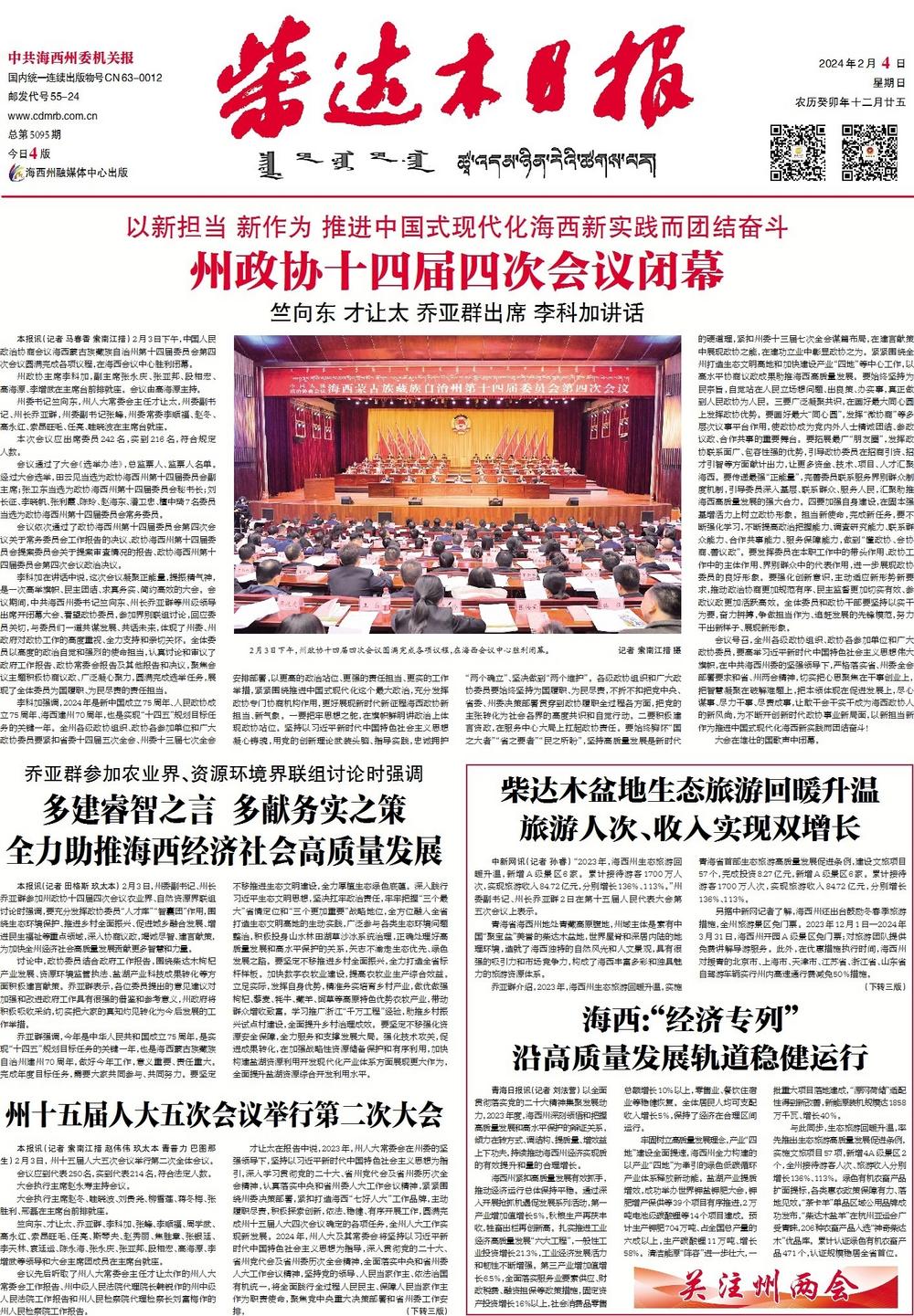 乔亚群表示,2024年,海西州将大力挖掘“三山一盆一星空”资源优势,推动生态旅游特色化、品牌化、差异化发展。着力做好精品线路打造、旅游要素保障等工作,切实提高生态旅游服务质量。加快推进茶卡盐湖、水上雅丹5A级景区创建。