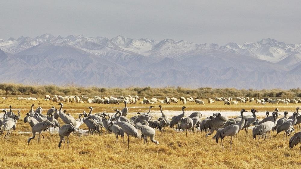 春日的都兰县巴隆草原,静谧而富有诗意,犹如仙境一般……3月20日,记者拍摄到成群结队的灰鹤悄然飞临,它们时而觅食嬉戏,时而展翅翱翔,和远处成群的牛羊构成了一道亮丽的生态画卷。据监测统计,今年来这里停歇觅食的各类候鸟种群数量较往年有所增加。