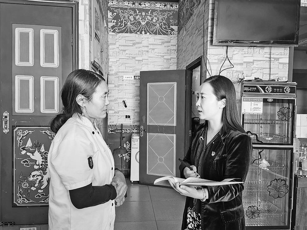 作为天峻县市场监督管理局党组成员、副局长,从2022年10月开始, 蒲珍虹经常会这样“现场办公”,面对面为步行街商户想办法、拿主意。在这里,她还有一个新的身份——党建指导员。