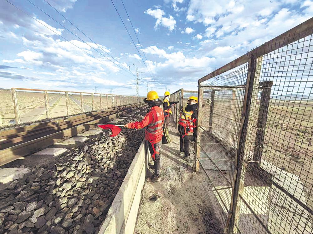 14时20分,“天窗”作业正式结束。张永仓和工友们携着疲惫之态,慢慢走下大桥。在工程车扬起的沙尘中,他们又迈向戈壁深处的另一座桥梁。