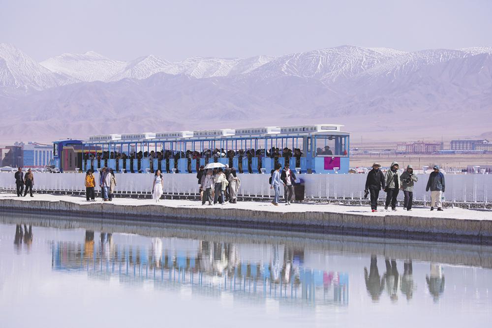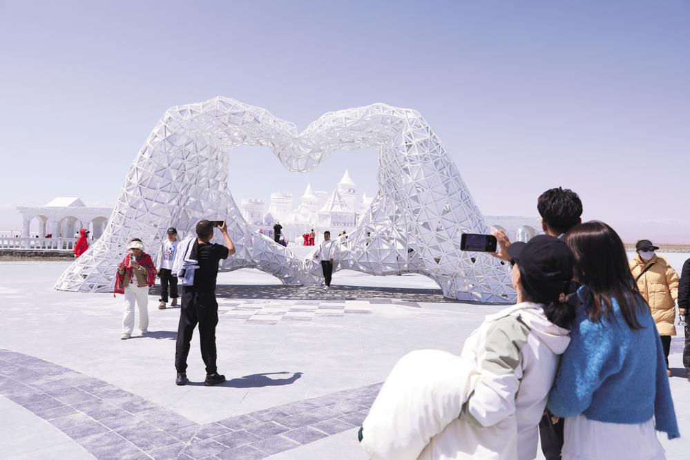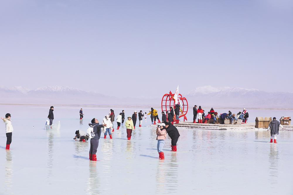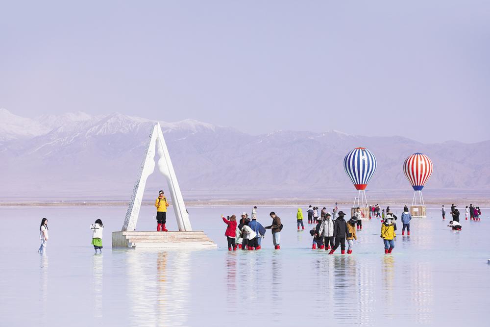 “五一”假期,茶卡盐湖天空之镜景区人气火爆,5月1日进入景区的游客近1.3万人次。今年,茶卡盐湖景区景观再次提质升级。匠心打造“茶卡奇缘”盐雕主题区域,引来游客“打卡热”。