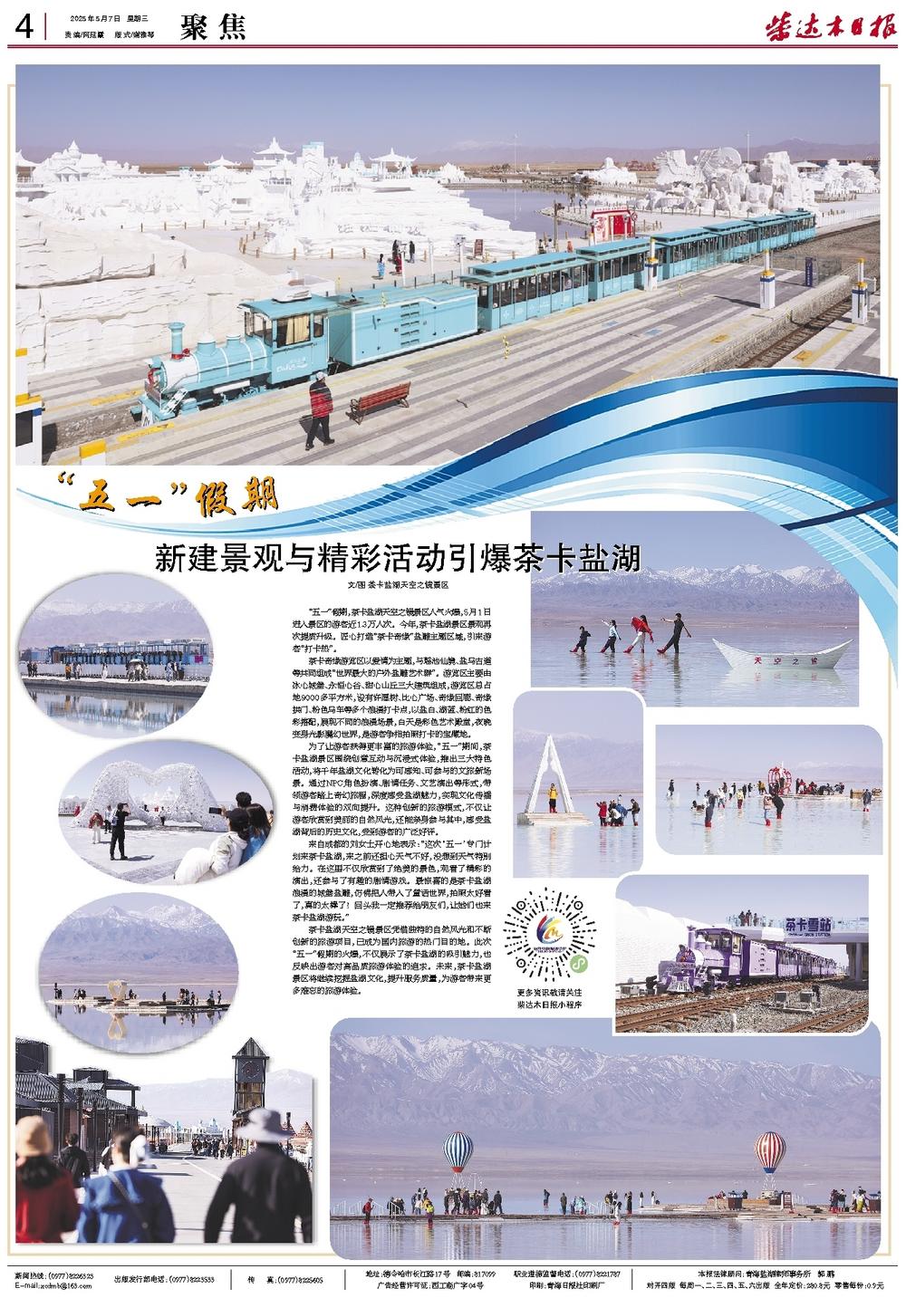 茶卡盐湖天空之镜景区凭借独特的自然风光和不断创新的旅游项目,已成为国内旅游的热门目的地。此次“五一”假期的火爆,不仅展示了茶卡盐湖的吸引魅力,也反映出游客对高品质旅游体验的追求。未来,茶卡盐湖景区将继续挖掘盐湖文化,提升服务质量,为游客带来更多难忘的旅游体验。